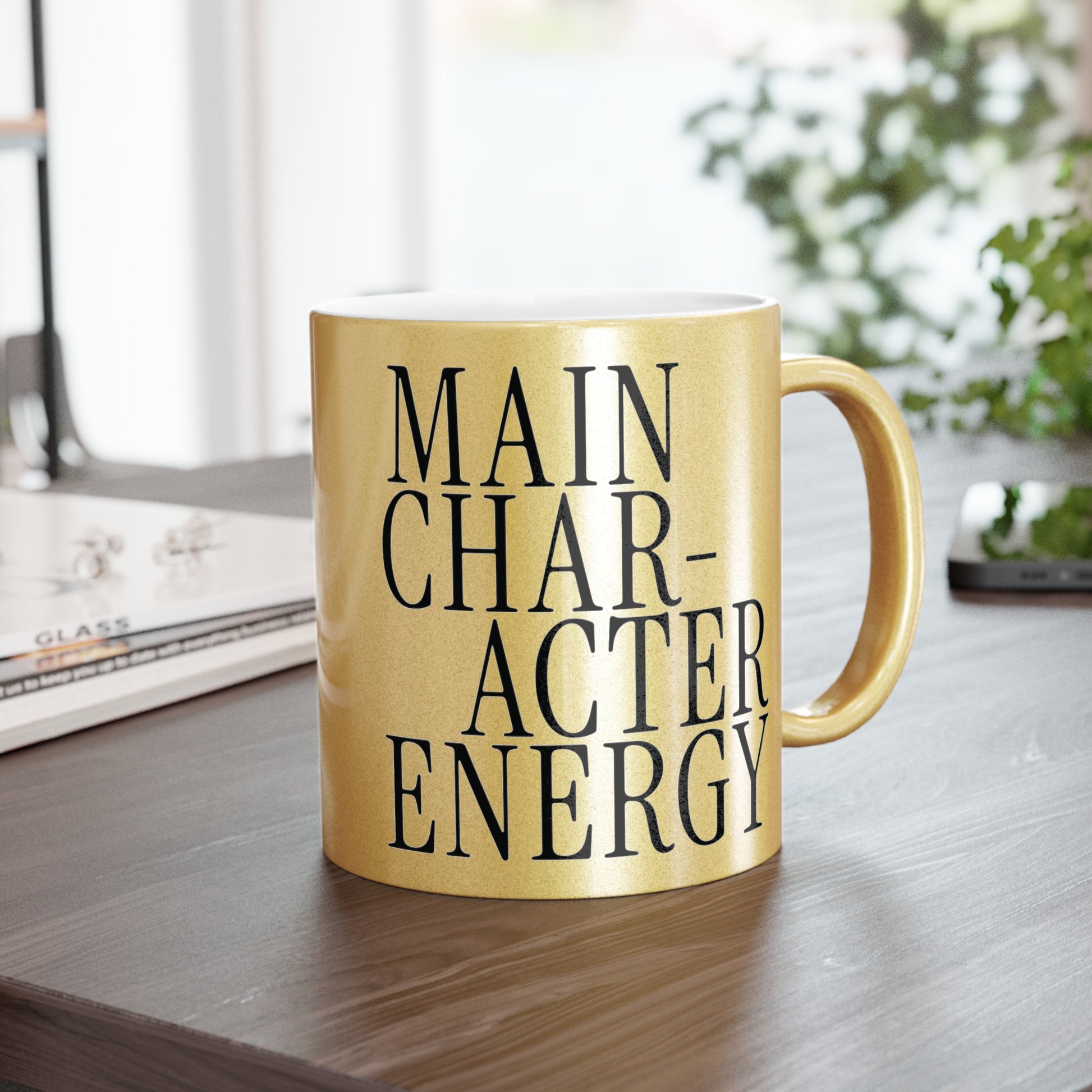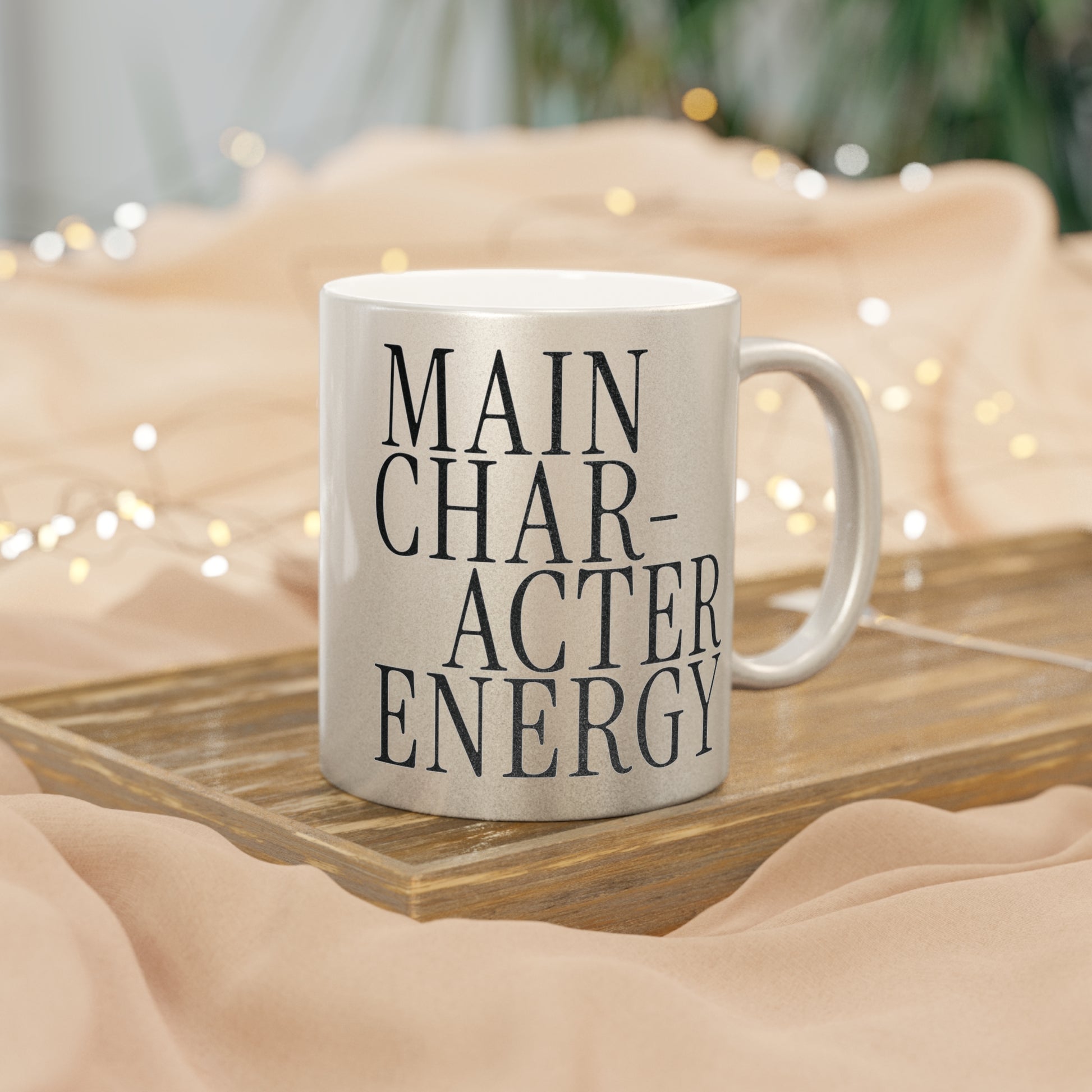 Sip like the main character you are with this metallic mug. Perfect for coffee or tea lovers, this sleek silver or gold mug brings a sense of power and intention to your mornings. Ideal for those wanting to start their day on a positive note and embody 'Main Character Energy'. Great for personal use or as a gift for special occasions like birthdays, promotions, or achievements.